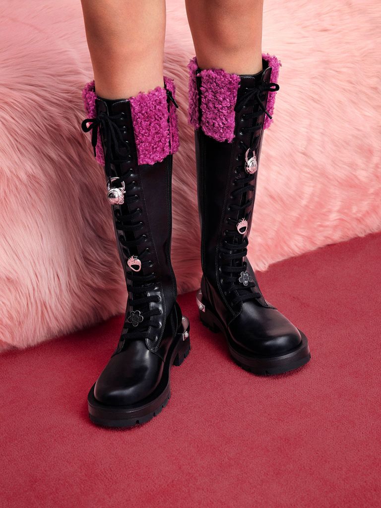 Lotso Furry Knee-High Combat Boots – Black Textured / Black ($159)